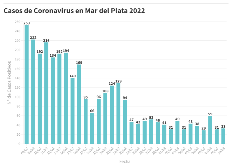 En el último informe del SISA reportado hoy se confirmaron 33 nuevos pacientes en tratamiento por Covid-19 en General Pueyrredon, con muestras realizadas desde el 3 al 9 de marzo.