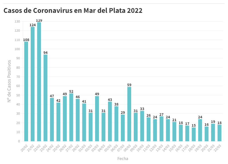 En el último informe del SISA reportado este martes se confirmaron 18 nuevos pacientes en tratamiento por Covid-19 en General Pueyrredon, con muestras realizadas desde el 17 al 21 de marzo.