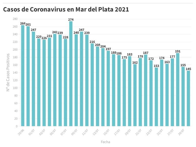 Se reportaron 145 nuevos casos de Covid en Mar del Plata