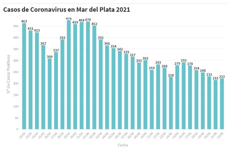 En el último informe del SISA, se confirmaron hoy 222 nuevos pacientes en tratamiento por Covid-19, de los cuales 15 corresponden a casos definidos por criterio clínico epidemiológico y 207 a estudios laboratoriales realizados desde el 8 al 21 de junio.