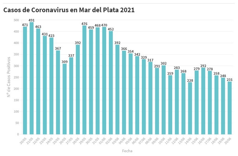 En el último informe del SISA, se confirmaron 231 nuevos pacientes en tratamiento por Covid-19 en Mar del Plata, de los cuales 29 corresponden a casos definidos por criterio clínico epidemiológico y 202 a estudios laboratoriales realizados desde el 10 al 19 de junio.