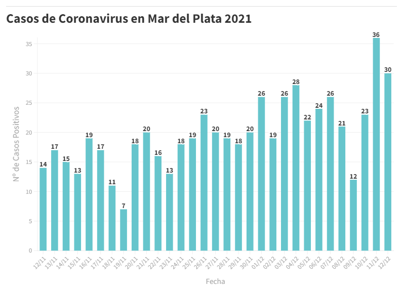 En el último informe del  Sistema Integrado de Información Sanitaria Argentino reportado hoy, se confirmaron 30 nuevos pacientes en tratamiento por Covid-19 en General Pueyrredon, que corresponden a estudios laboratoriales realizados desde el 8 al 11 de diciembre.