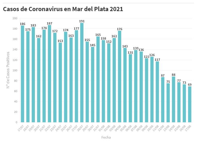 Siguen en baja los contagios: Se confirmaron hoy 69 nuevos casos en General Pueyrredon