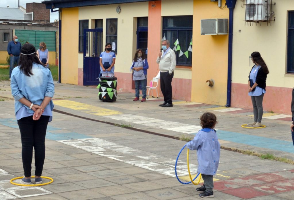 El intendente Miguel Lunghi estuvo en el Jardín Maternal María Teresa Díaz, en el barrio Parque Movediza, y resaltó la importancia de poder retomar la presencialidad en esos espacios.