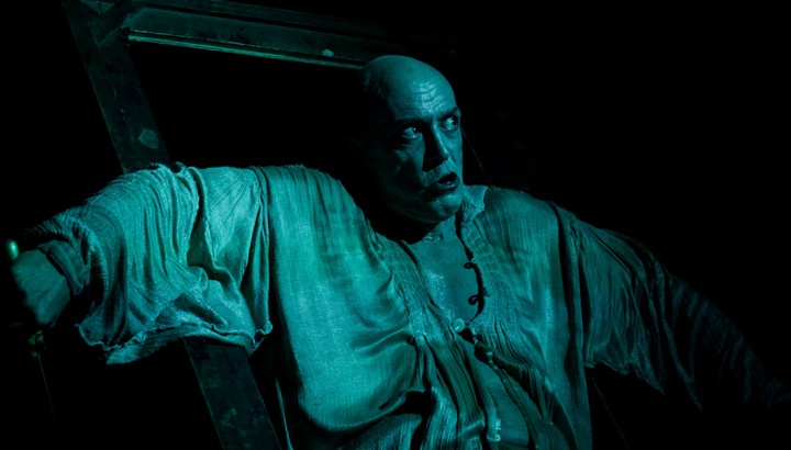 Como en el teatro griego, y el kabuki -donde todos los personajes eran interpretados por varones- Pompeyo actor, interpreta todos los roles de la tragedia shakesperiana, hombres, mujeres y… monstruos. Esas brujas son Nosferatus que replicarán su horror en Macbeth y su mujer. Como hijas de Hécate, enfermarán a la pareja protagónica con el veneno del Poder. Siempre pasa, antes, ahora…