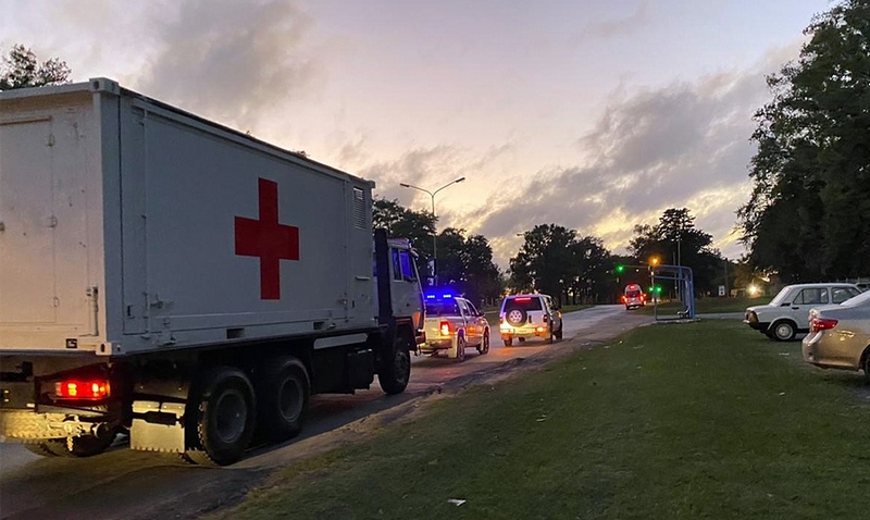 El hospital móvil del Ministerio de Defensa fue trasladado al hospital Simplemente Evita de González Catán, en el partido de La Matanza, para reforzar su capacidad con el fin de atender las necesidades ante la segunda ola de la pandemia del coronavirus en el país.