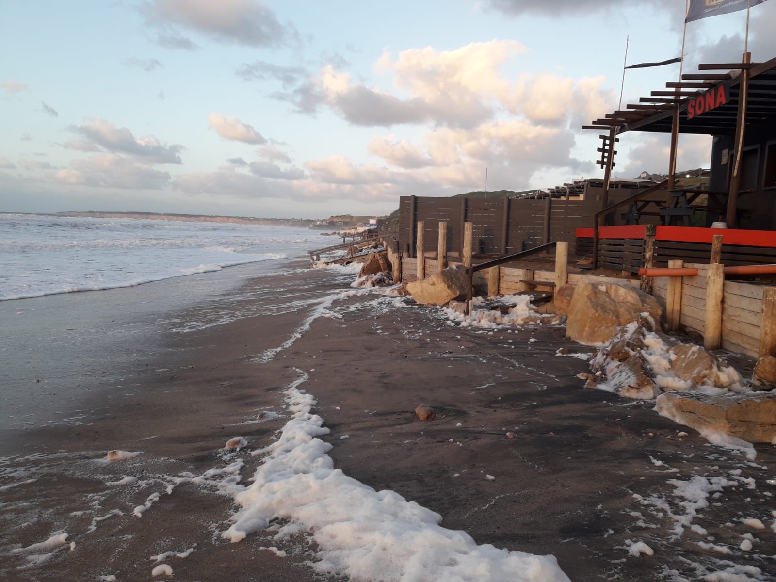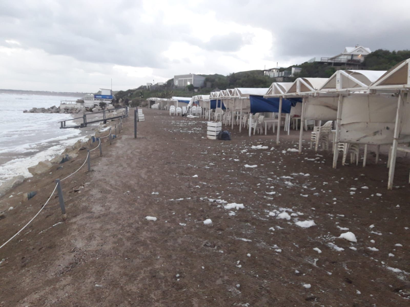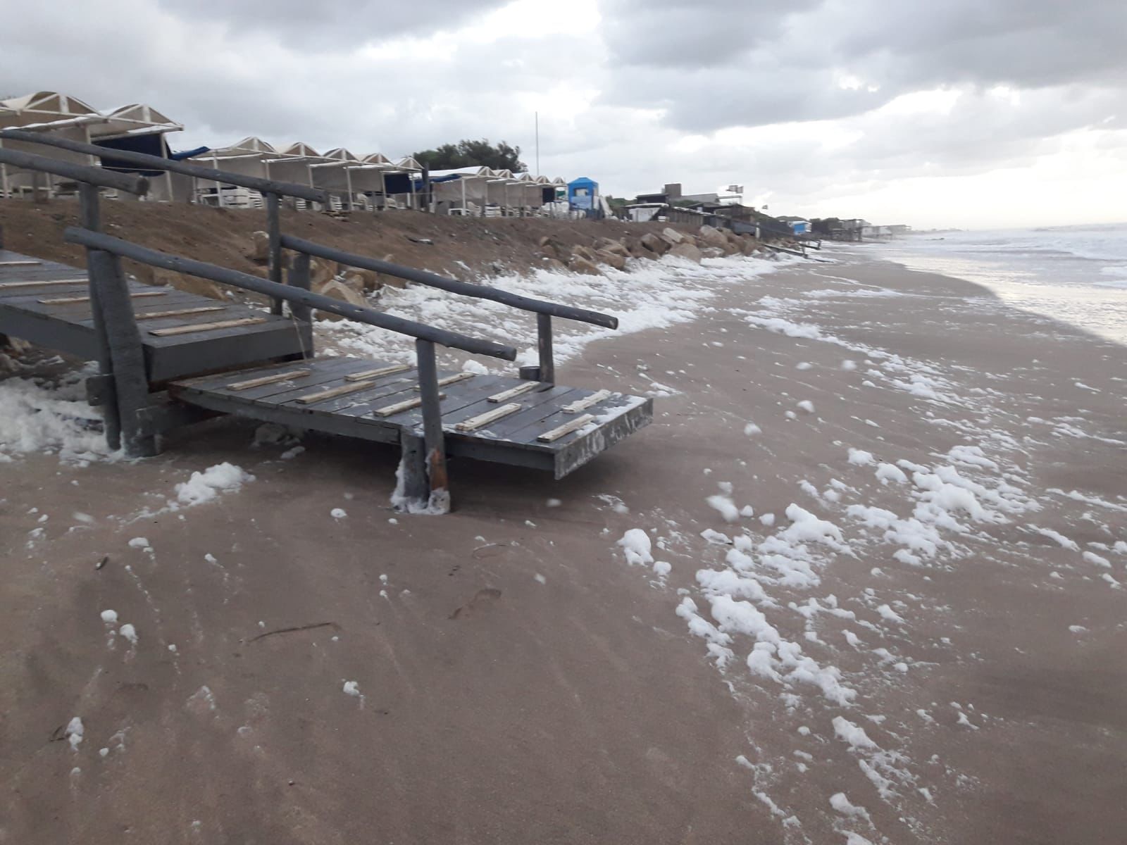 La crecida del mar alcanza en algunos sectores costeros como Punta Mogotes la línea de carpas, haciendo desaparecer el espacio de playas públicas así como en la zona del norte de la ciudad, hay sectores en los que es imposible bajar a la playa sin ser alcanzado por las olas.